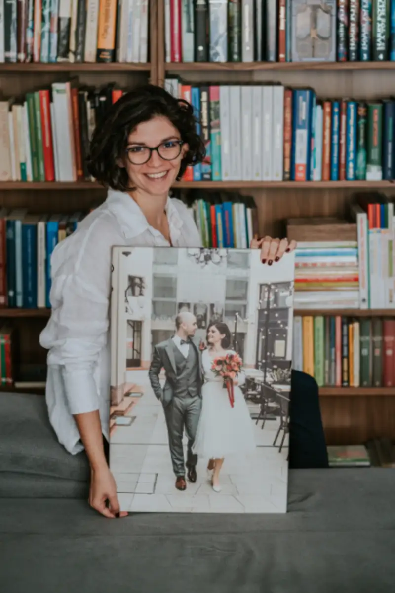 Betti: A digitális világban milliónyi fotó rejtőzik a telefonjainkban, amiket ritkán találunk meg. Egy vászonkép vagy fotóalbum ezzel szemben kézzelfogható, mindig szem előtt van, és valóban megőrzi az emlékeket. Egy ikonikus pillanat megérdemli, hogy a falon kapjon helyet – így nemcsak nekünk jelent örömöt, hanem a következő generációnak is. Illetve a digitális eszközök elavulhatnak, lehet 5-10 év múlva már más adathordozók lesznek használatban és nem tudjuk visszanézni a régi fotóinkat. Ezzel szemben egy jó minőségű vászonkép, ami még az UV-sugaraknak is ellenáll, évtizedeken át díszítheti az otthonunkat.